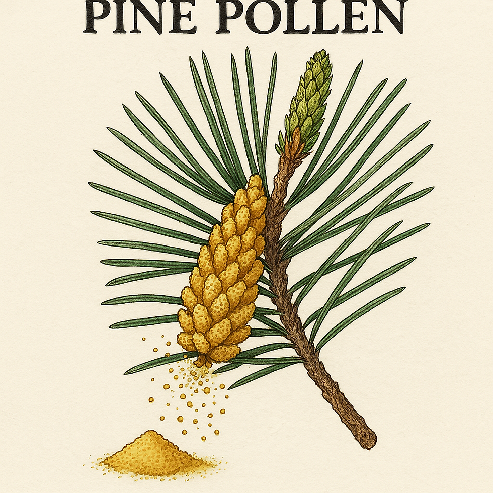 How It Grows: Found on male pine cones, pine pollen appears as a fine golden dust released into the air in early spring. Health Benefits: